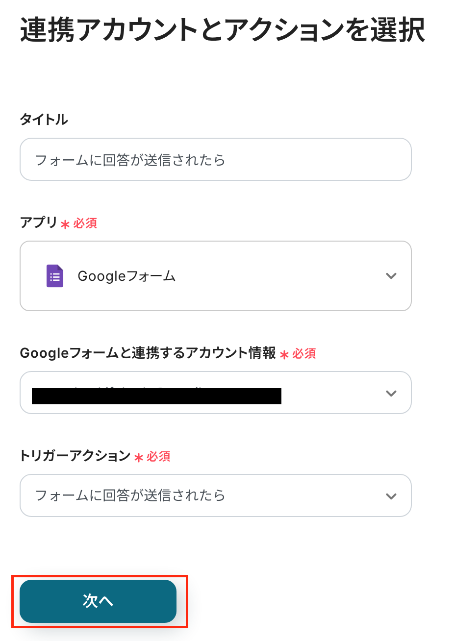 - 次に、トリガーとしてGoogleフォームを選択し、「フォームに回答が送信されたら」というアクションを設定します。この設定により、指定したGoogleフォームに新しい回答が送信されるとフローボットが起動します。