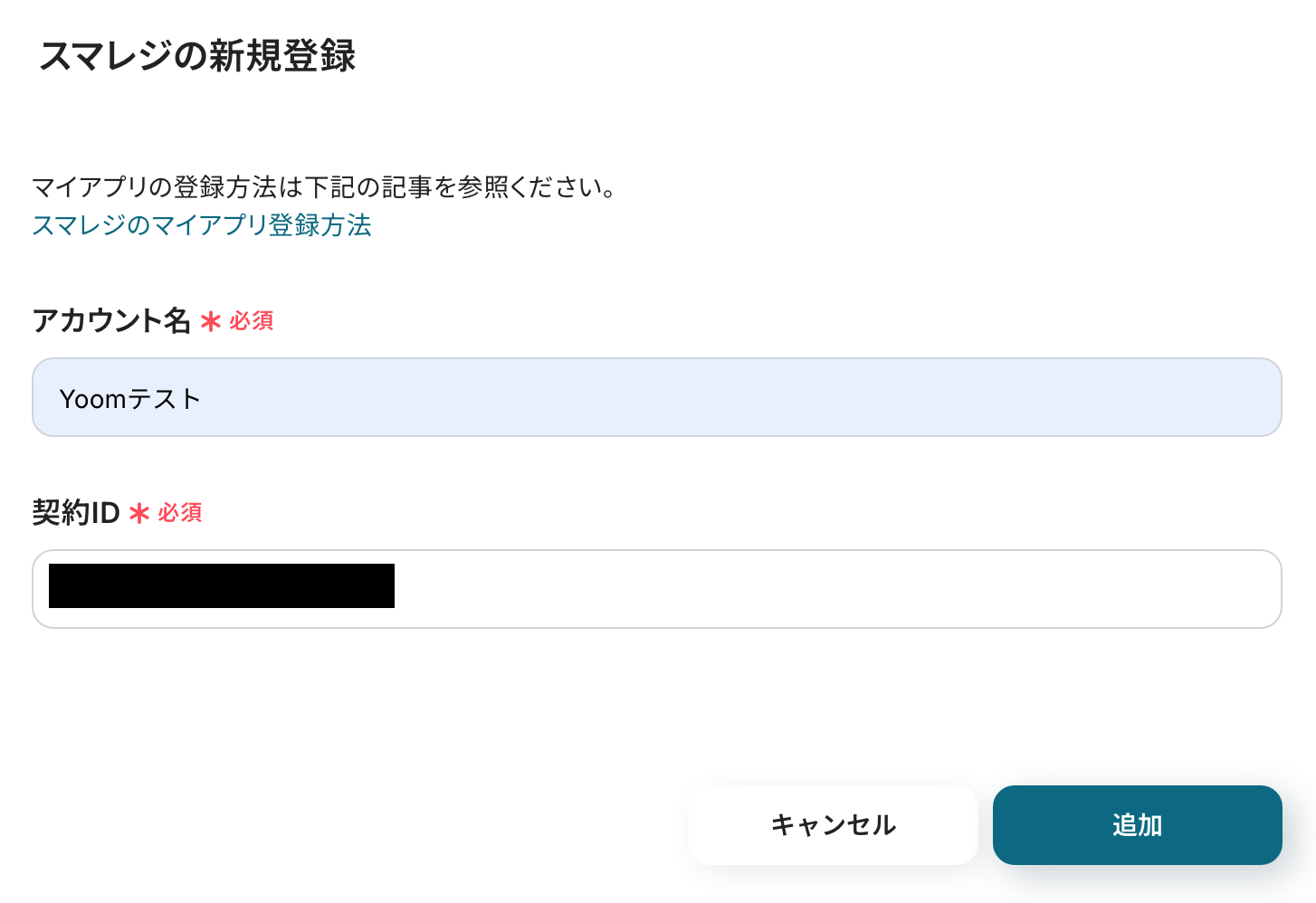 - スマレジの「商品情報を登録」アクションを設定する際、Yoomとスマレジを連携するために必要な「契約ID」は、ご利用のスマレジ管理画面から取得した正しい情報を入力してください。