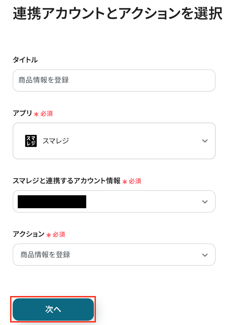 Notionでレコードが登録されたら、スマレジに新規の商品情報を登録するフローです。