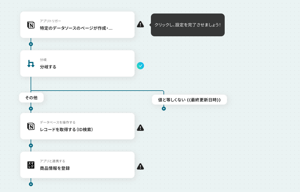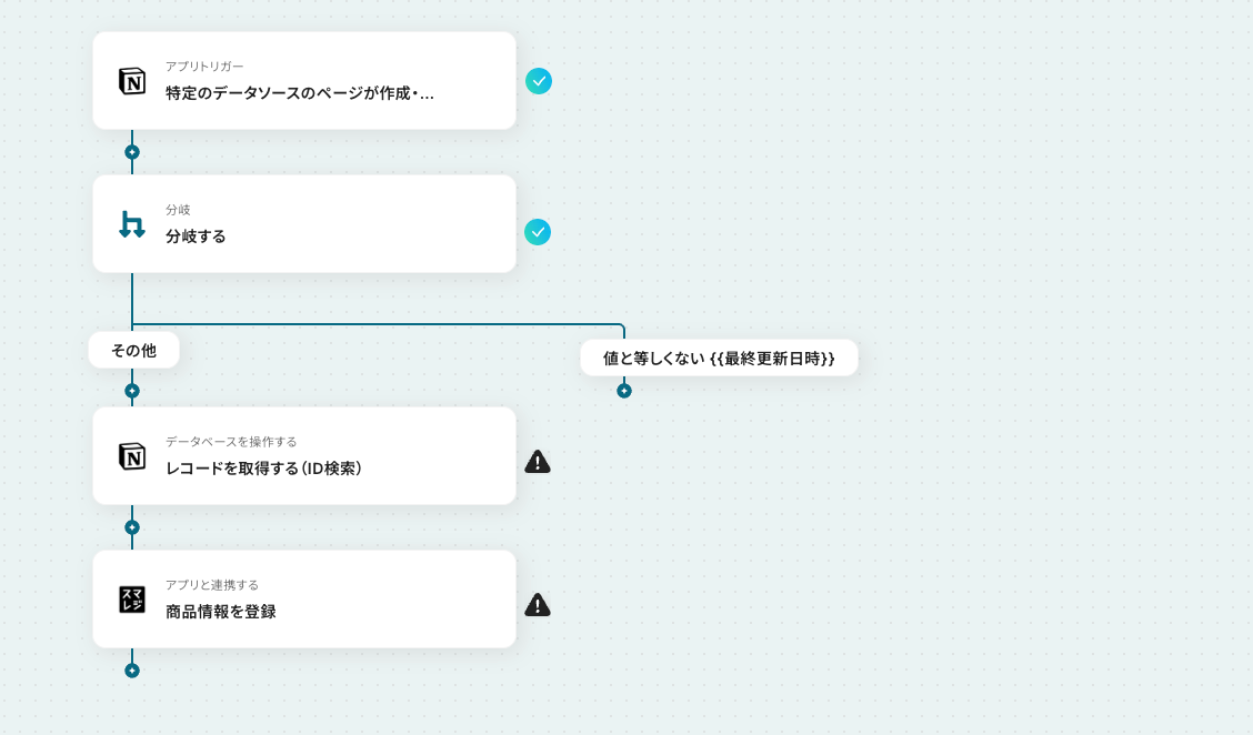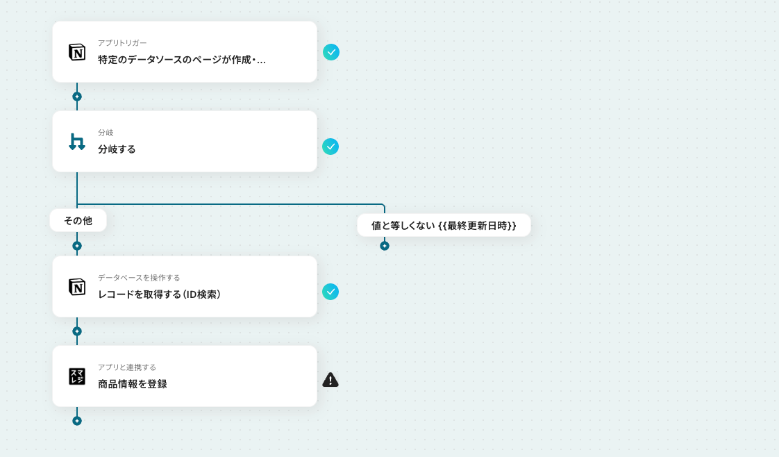 今回のフローは「Notionでレコードが登録されたら、スマレジに商品情報を登録する」というものです。