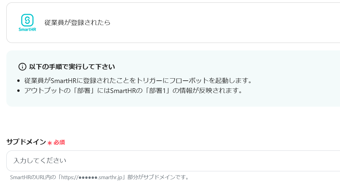 マイアプリ登録が完了したら、「SmartHRで従業員が登録されたらDropboxに従業員毎のフォルダを作成する」フローボットを作成していきます。