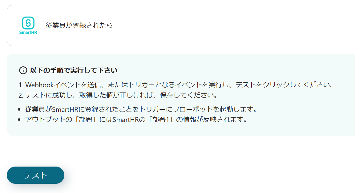 アウトプットに、SmartHRのテスト従業員の情報が反映したら保存します。