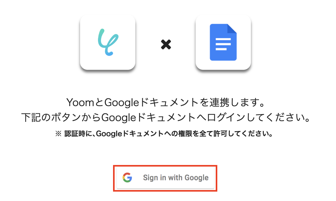 すると以下の画面が表示されるので、「Sign in with Google」をクリックしましょう。