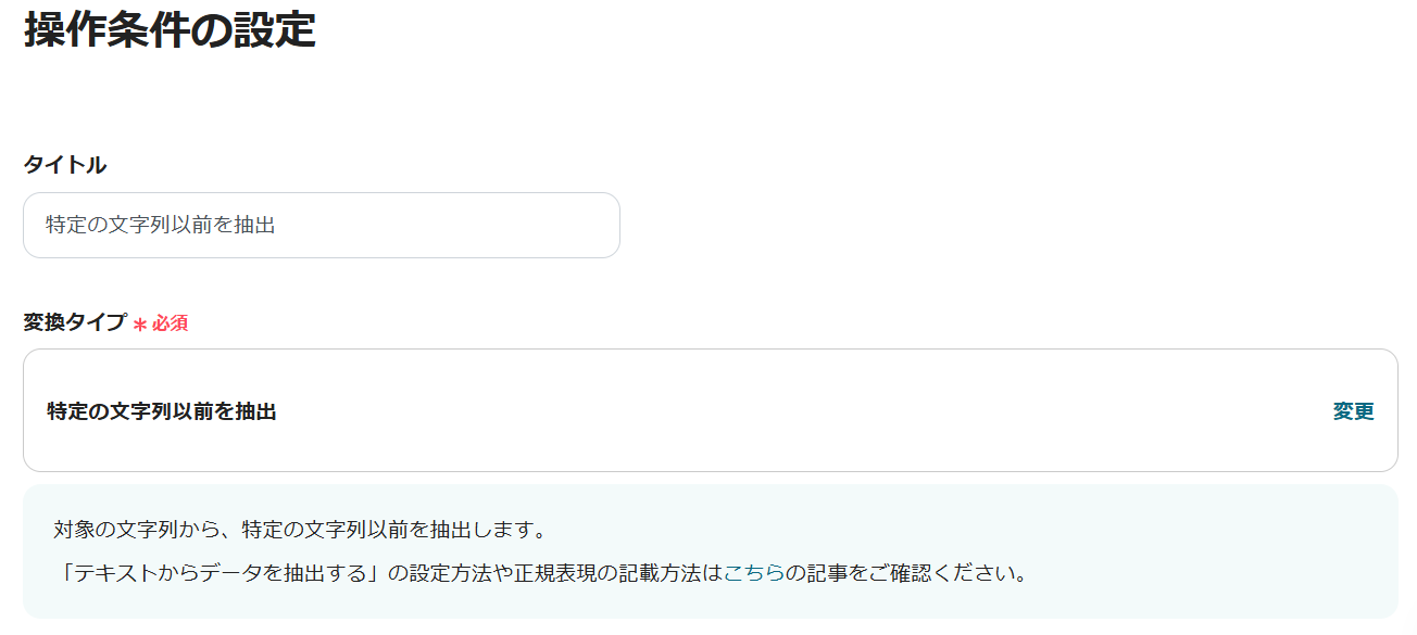 続いて、対象の文字列から、特定の文字列以前を抽出する設定を行うので、「特定の文字列以前を抽出」をクリックしてください。 以下の画面が表示されたら、設定を確認しましょう。