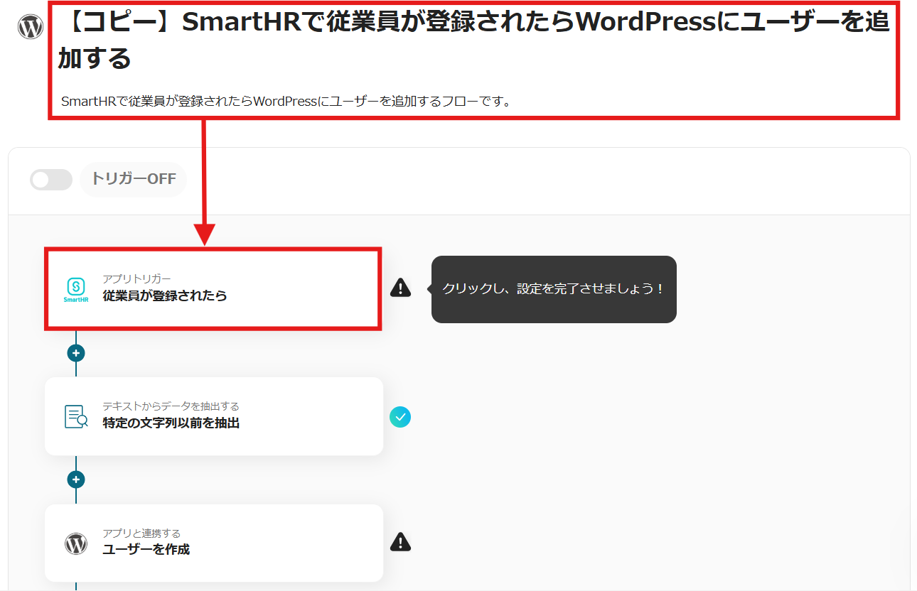 ステップ4:トリガーボタンをONにして、SmartHRとWordPress.orgの連携動作を確認
