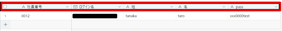 フィールド名は、各列の項目名を指しています。(下記画像赤枠部分)