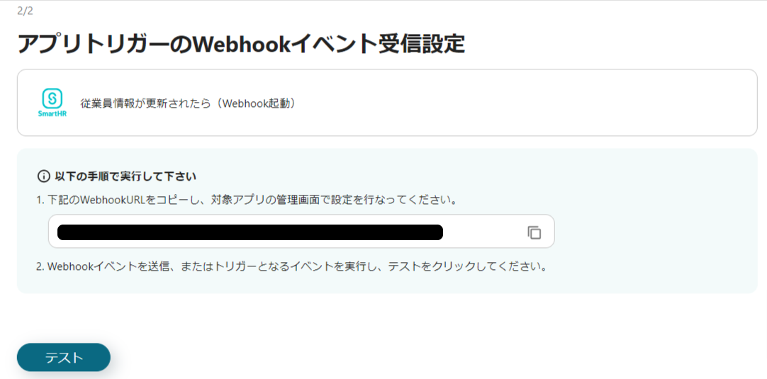 表示されたURLをコピーして、SmartHRの管理画面で設定します。詳しくは公式HPを確認してください。