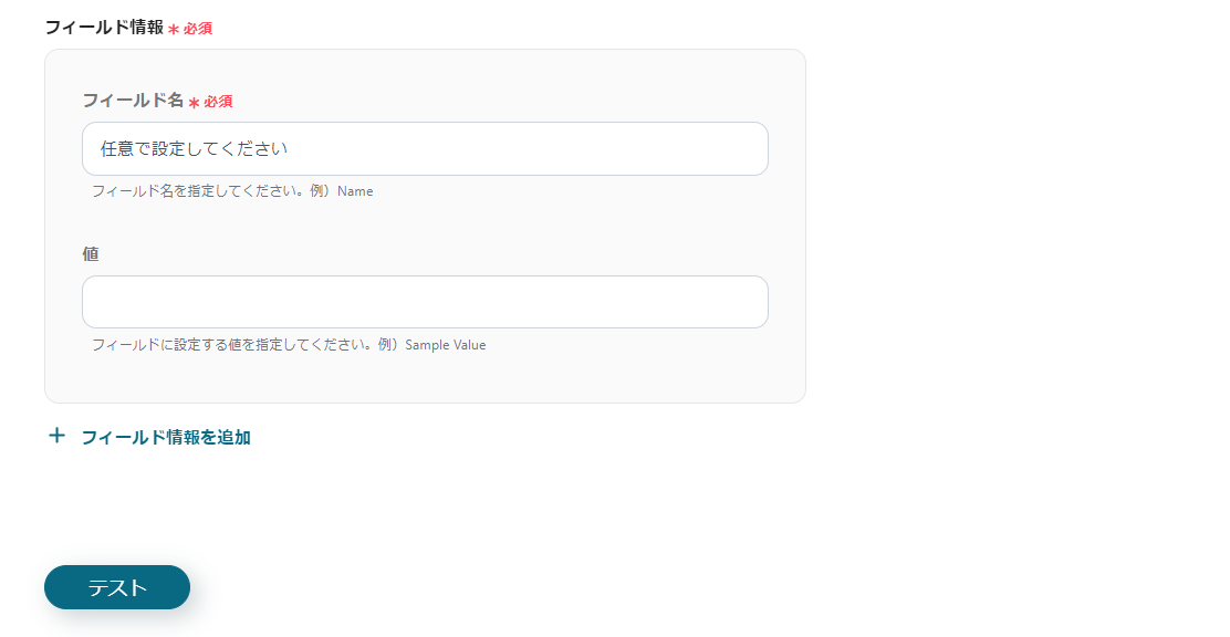 必要な項目をすべて入力出来たら「テスト」をクリックしてアウトプットを取得します。