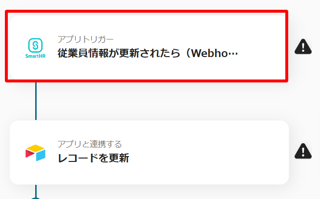 ここからは具体的な設定に移ります。先ほどコピーしておいたテンプレートの1番目「従業員情報が更新されたら」をクリックしてください。