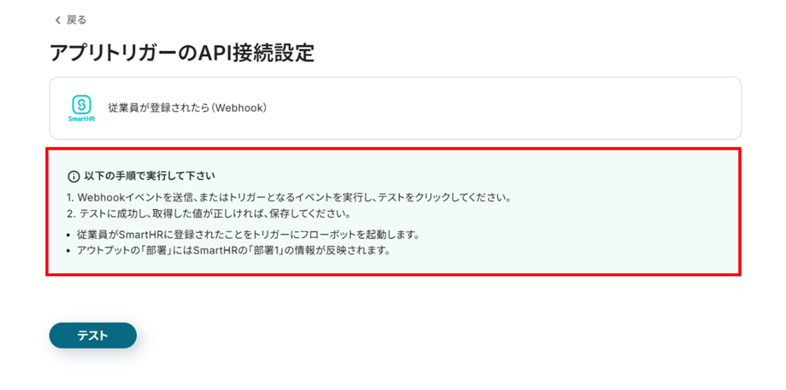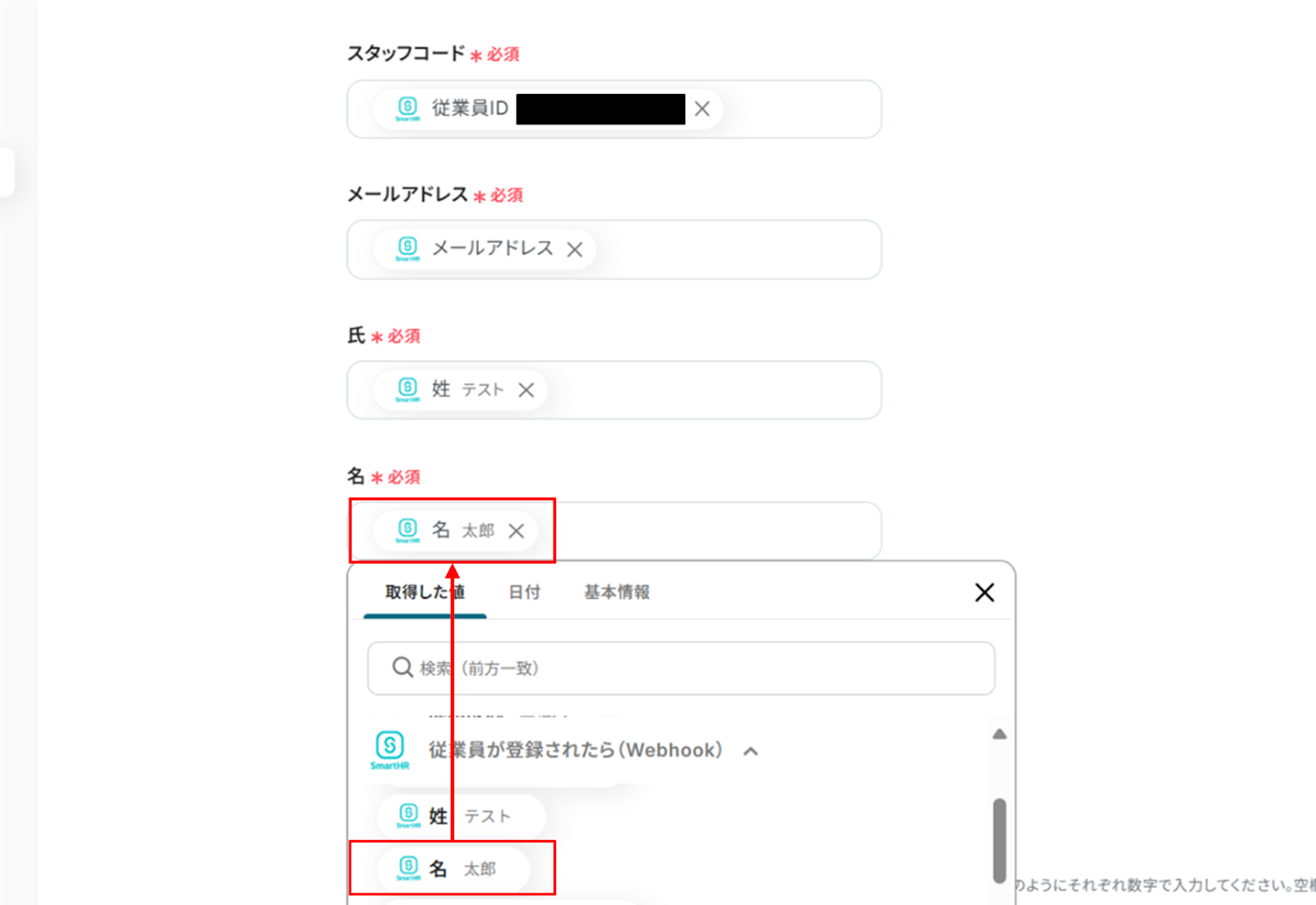 「取得した値」にSmartHRの情報が反映されればテスト成功です。