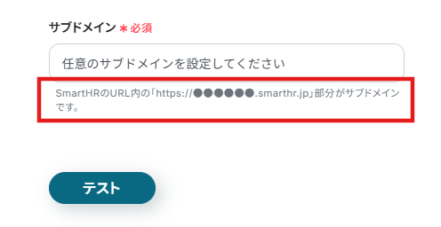 3.入力欄下の注釈を参考に「サブドメイン」を入力してテストを行いましょう。