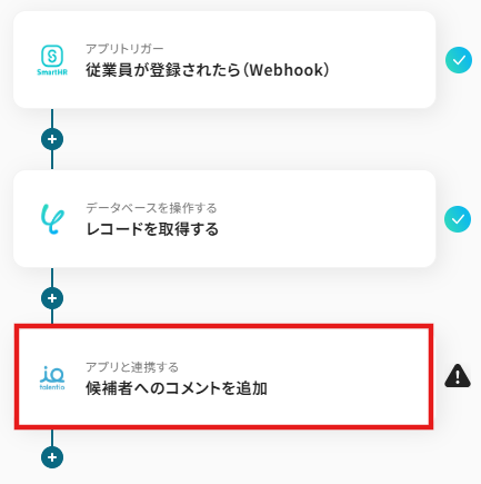 「SmartHRで従業員が新たに登録されたら、Talentioで候補者へのコメントを追加する」