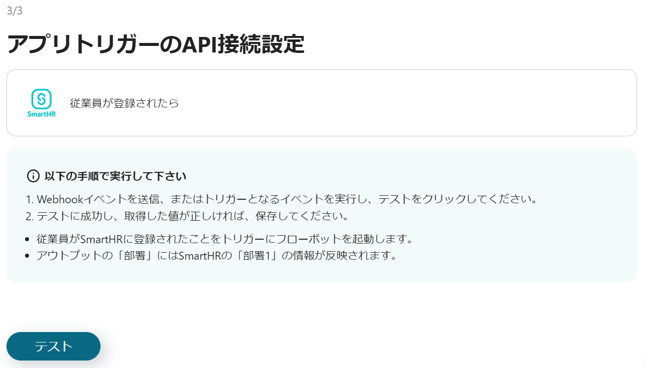 初めにSmartHRの設定から行うので、「従業員が登録されたら」をクリックしてください。