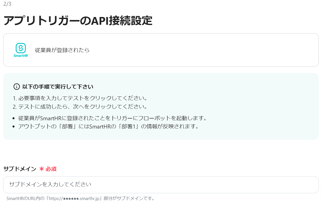 ※SmartHRのURL内の「https://●●●●●●.smarthr.jp」●部分がサブドメインです。
