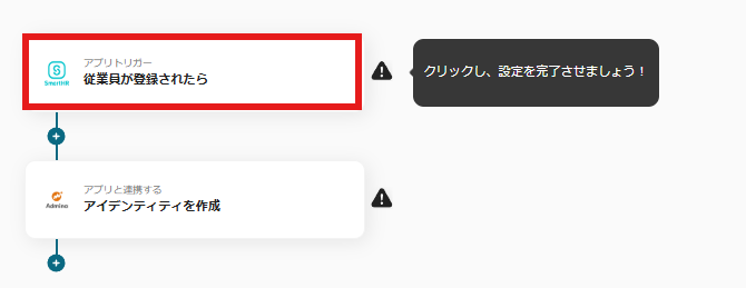 ステップ3:フローの起点となるSmartHRのトリガー設定と、その後に続くマネーフォワード Adminaのオペレーション設定
