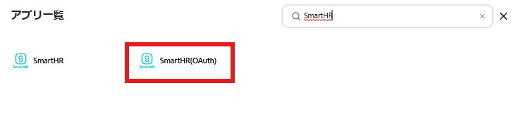 次に検索窓にSmartHRと入力し、表示された候補から「SmartHR」を選択します。