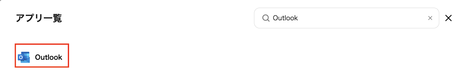 検索窓にOutlookと入力し、表示された候補から選択します。