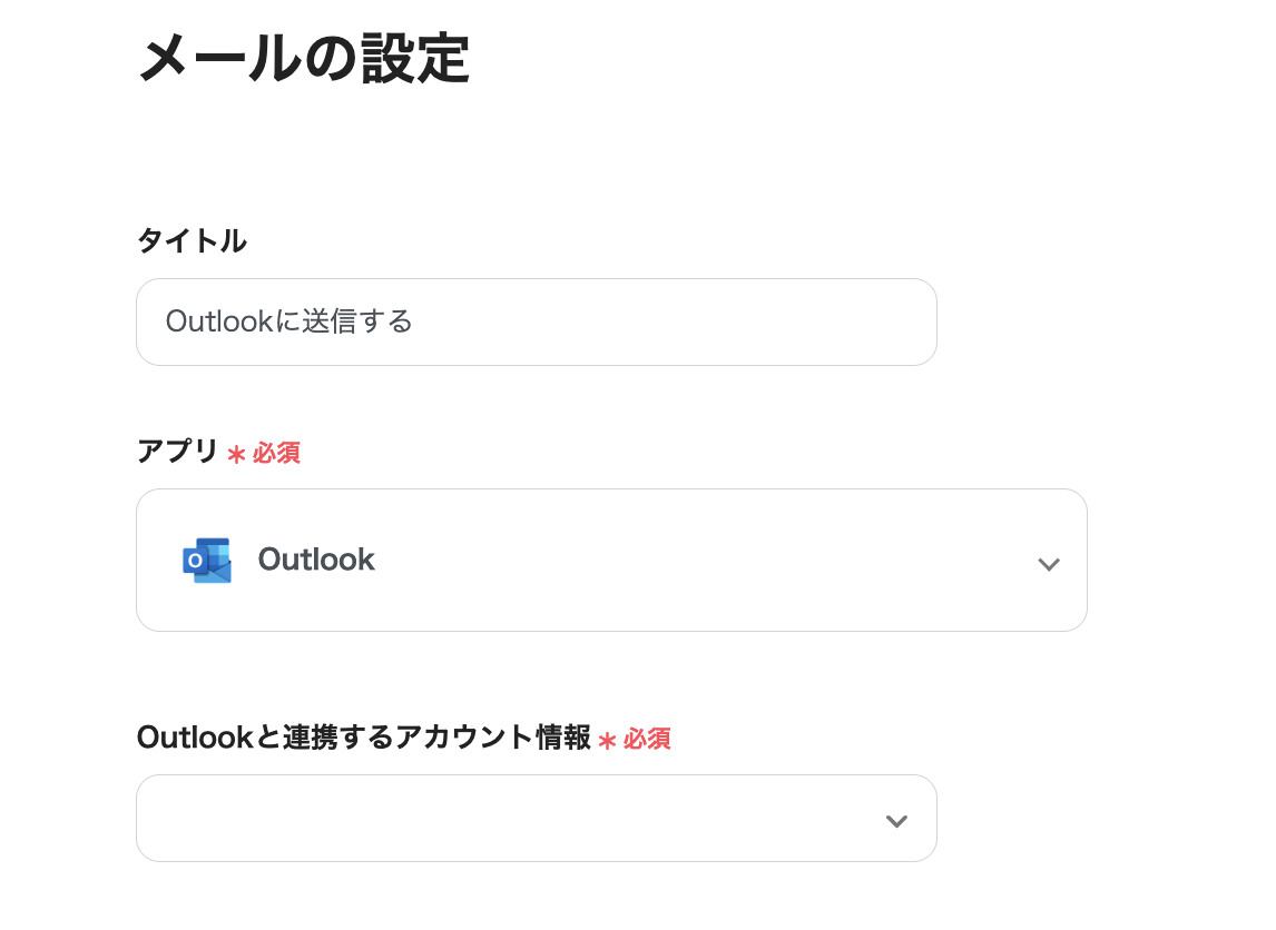 続いて、Outlookに登録された従業員情報を自動送信するアクションについて、設定を行います。
