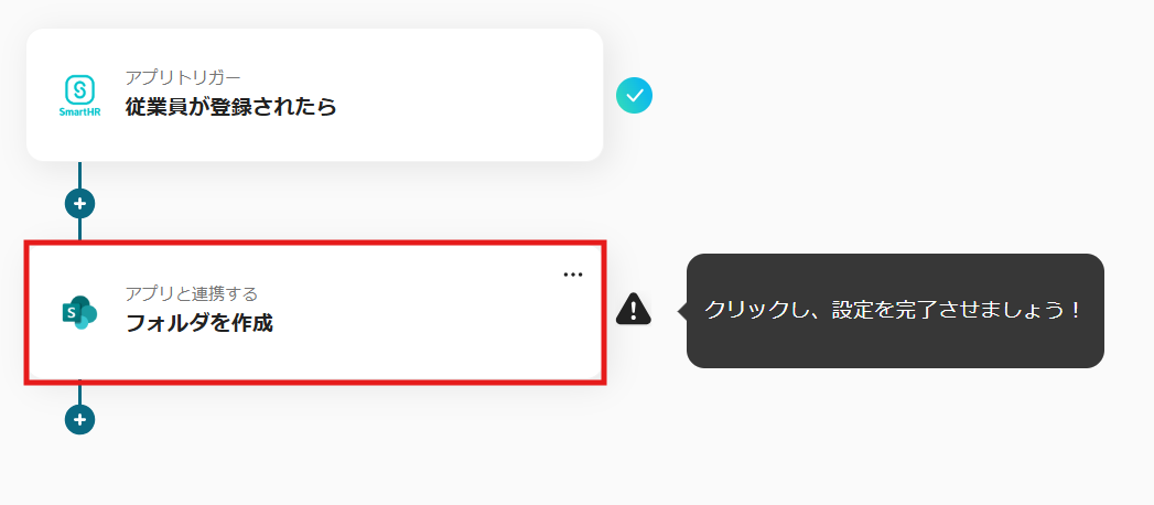 これで【SmartHRで従業員が登録されたらMicrosoft SharePointに従業員毎のフォルダを作成する】というフローが完成です。