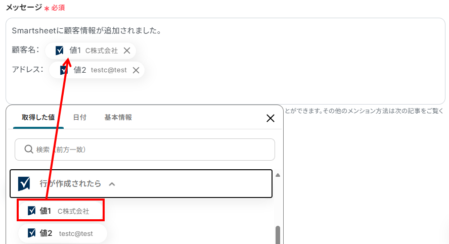 ・アウトプットを動的に埋め込む設定詳細はこちらをご参照ください。