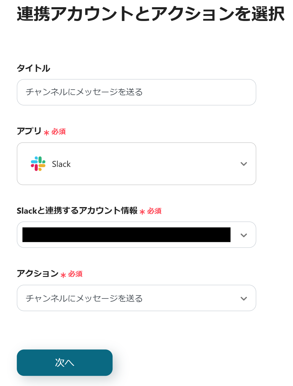 ここでは、Slackに送信する内容を具体的に設定していきます。