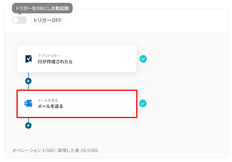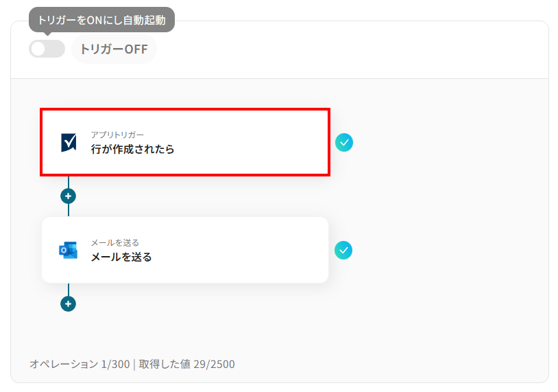お疲れ様でした!これですべての設定が完了です。設定が完了すると以下のようなメニューが表示されるので、トリガーをONにします。 これですべての設定が完了したので、動作確認をしてみましょう!