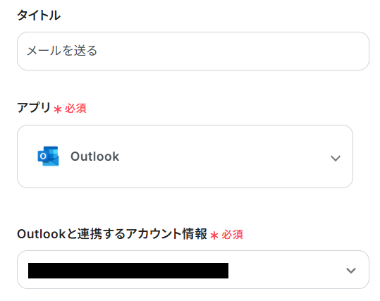 「連携アカウントとアクションを選択」の画面になるので、下記のように設定しましょう。