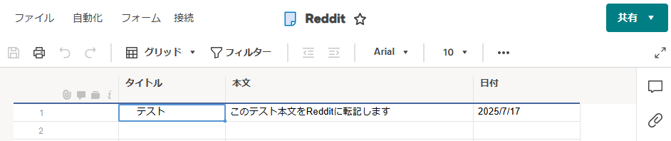 Smartsheetで特定条件に合う行が作成されたら、Redditで新規投稿を作成する
