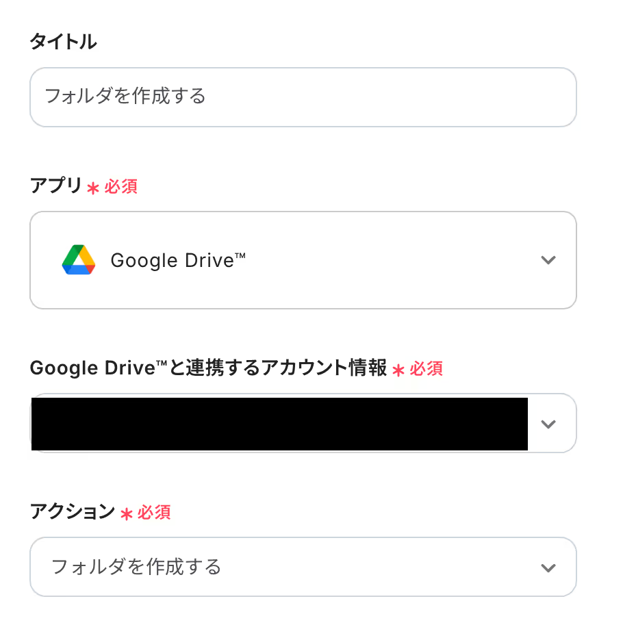 続いて、Smartsheetで抽出したデータを用いて、Google Driveでフォルダを作成する設定をしましょう。