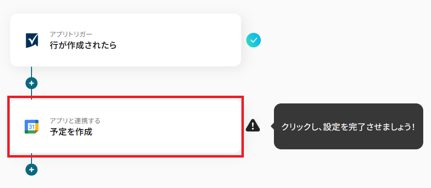 Smartsheetで行が追加されたことをYoomが検知したら、その情報を連携させてGoogleカレンダーに予定を自動作成するアクションを設定していきます。