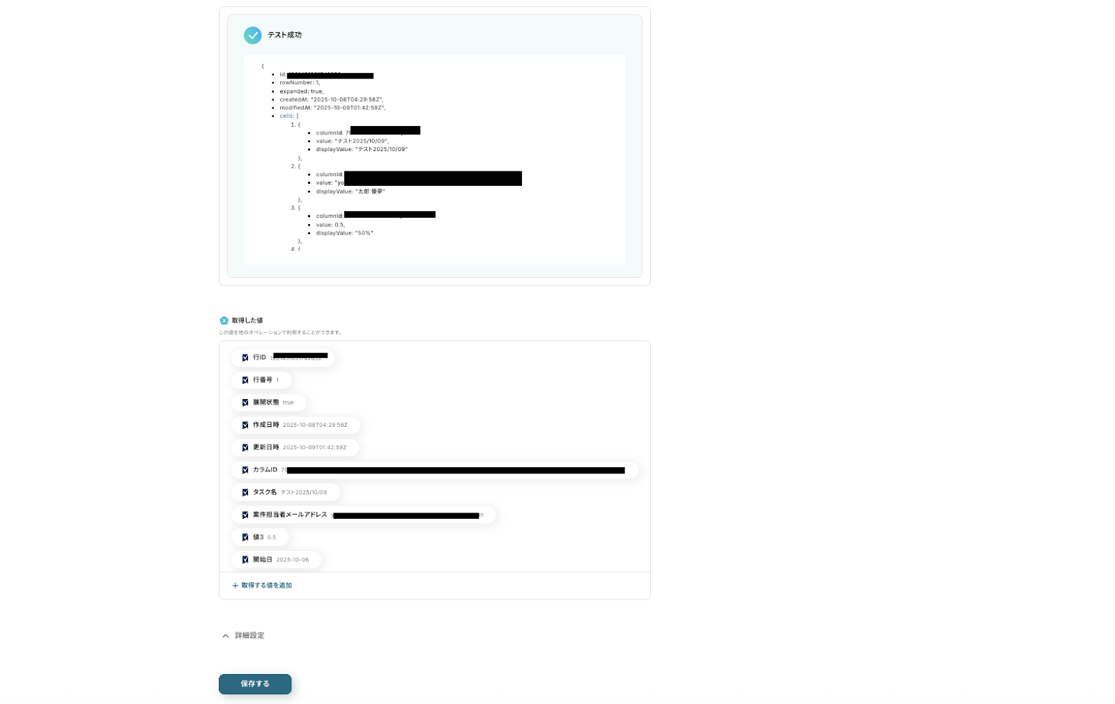 テスト完了を確認して『保存する』を押しましょう。