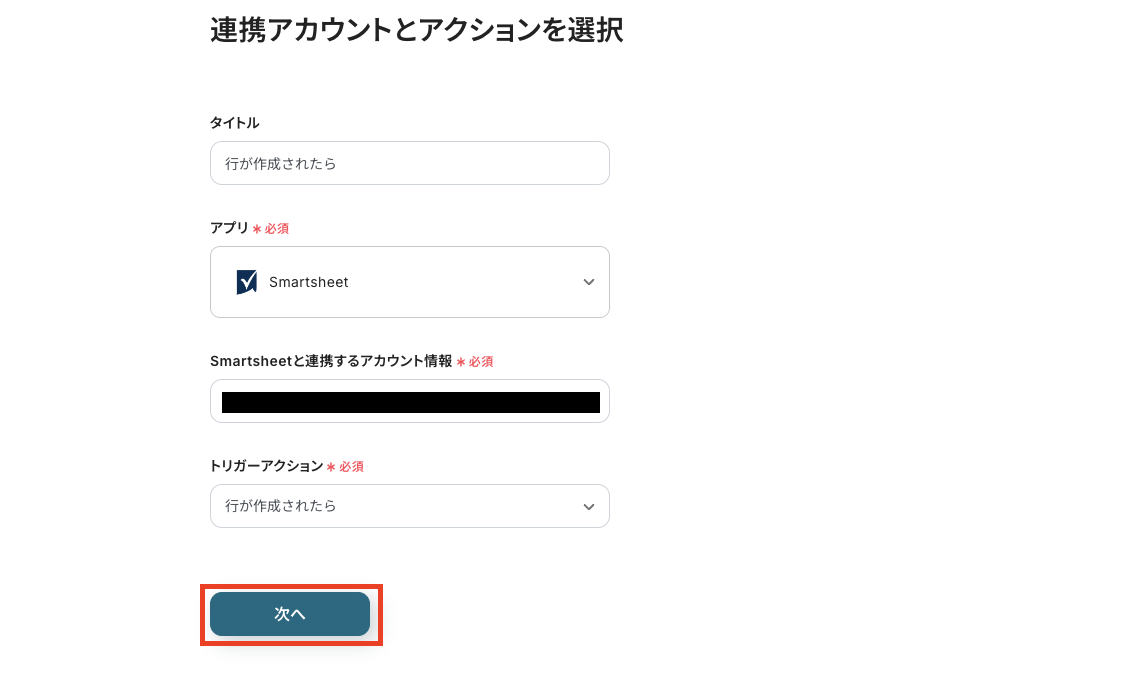 ステップ3:Smartsheetのトリガーアクション設定
