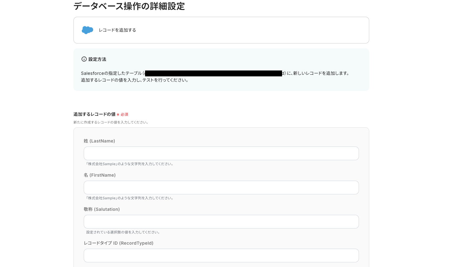 ステップ4:Salesforceにレコードを追加する設定