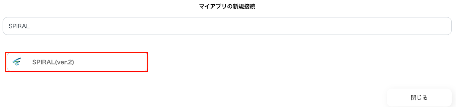 マイアプリ新規接続の画面で、SPIRALと検索し、アプリを選択してください。