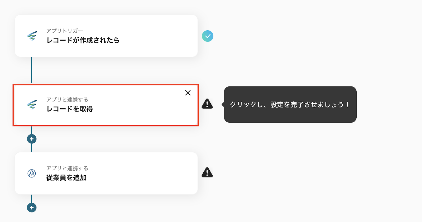 次に「レコードを取得」をクリックして設定を進めましょう。
