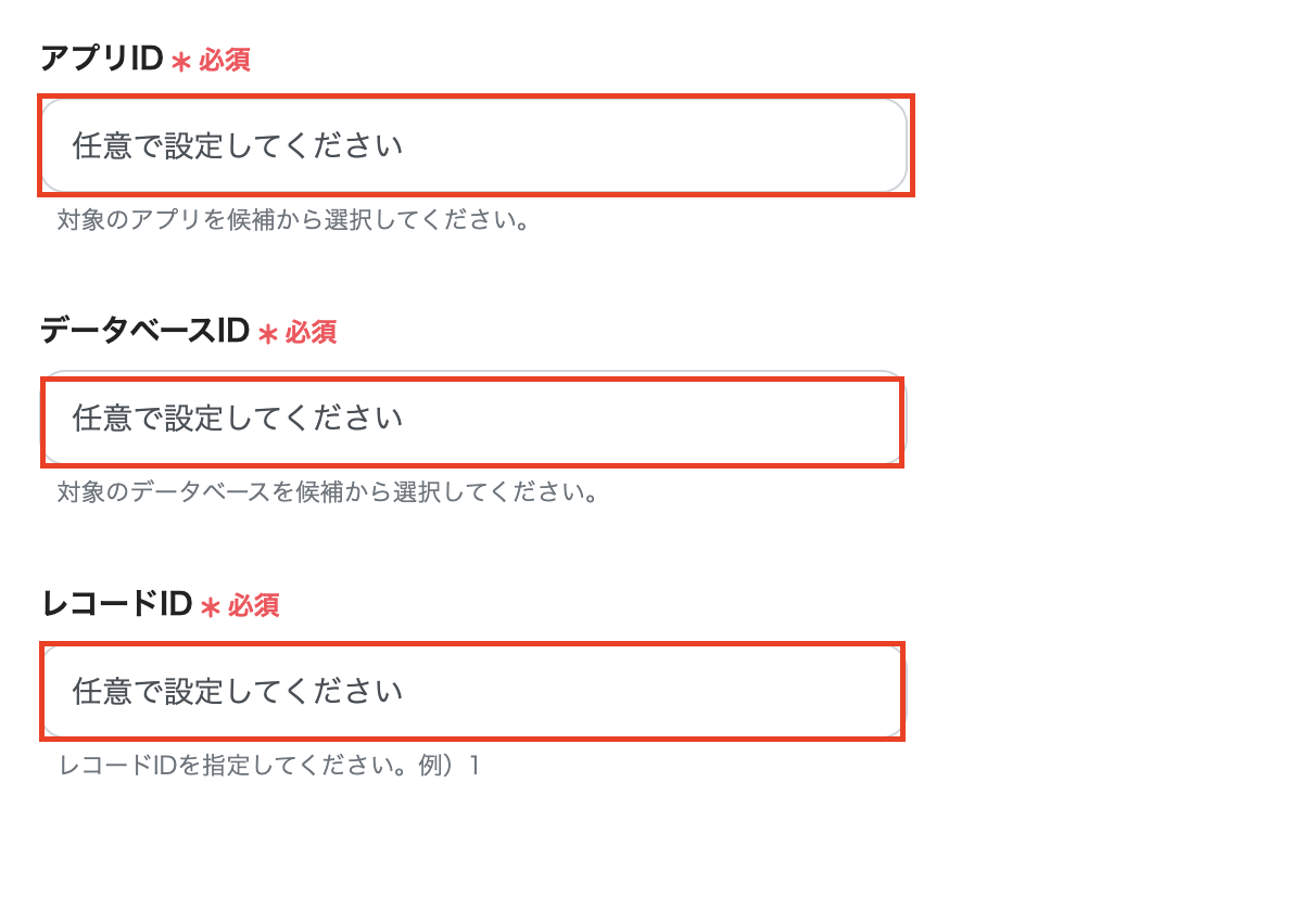 ・アプリID、データベースID、レコードIDを入力してテストを実行しましょう。