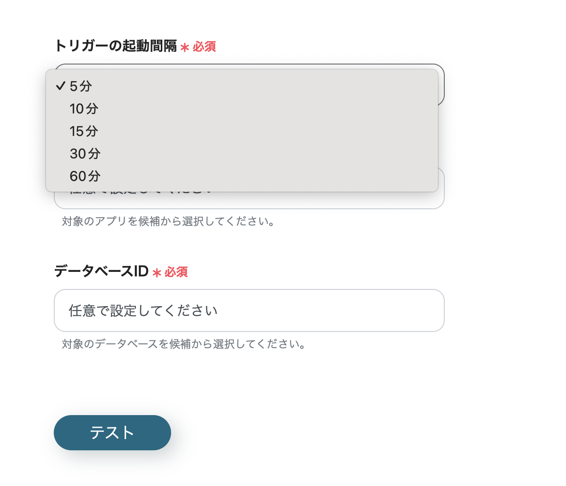 ・トリガーの起動間隔、アプリID、データベースIDを入力しましょう。