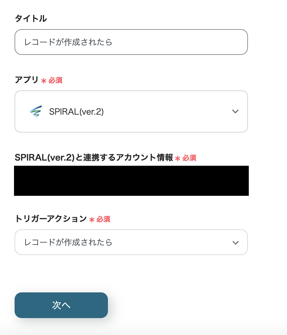 ・SPIRALと連携するアカウント情報を確認し、「次へ」をクリックしましょう。