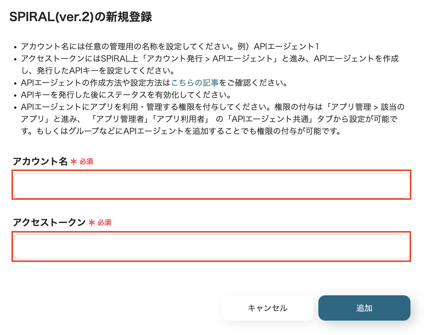 ・SPIRALと連携するアカウント情報を確認しましょう。