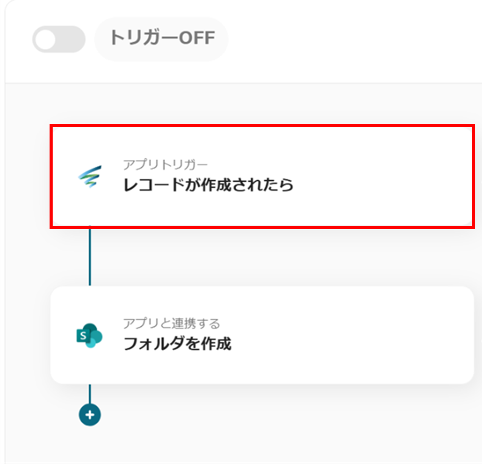 アプリトリガーの「レコードが作成されたら」をクリックします。