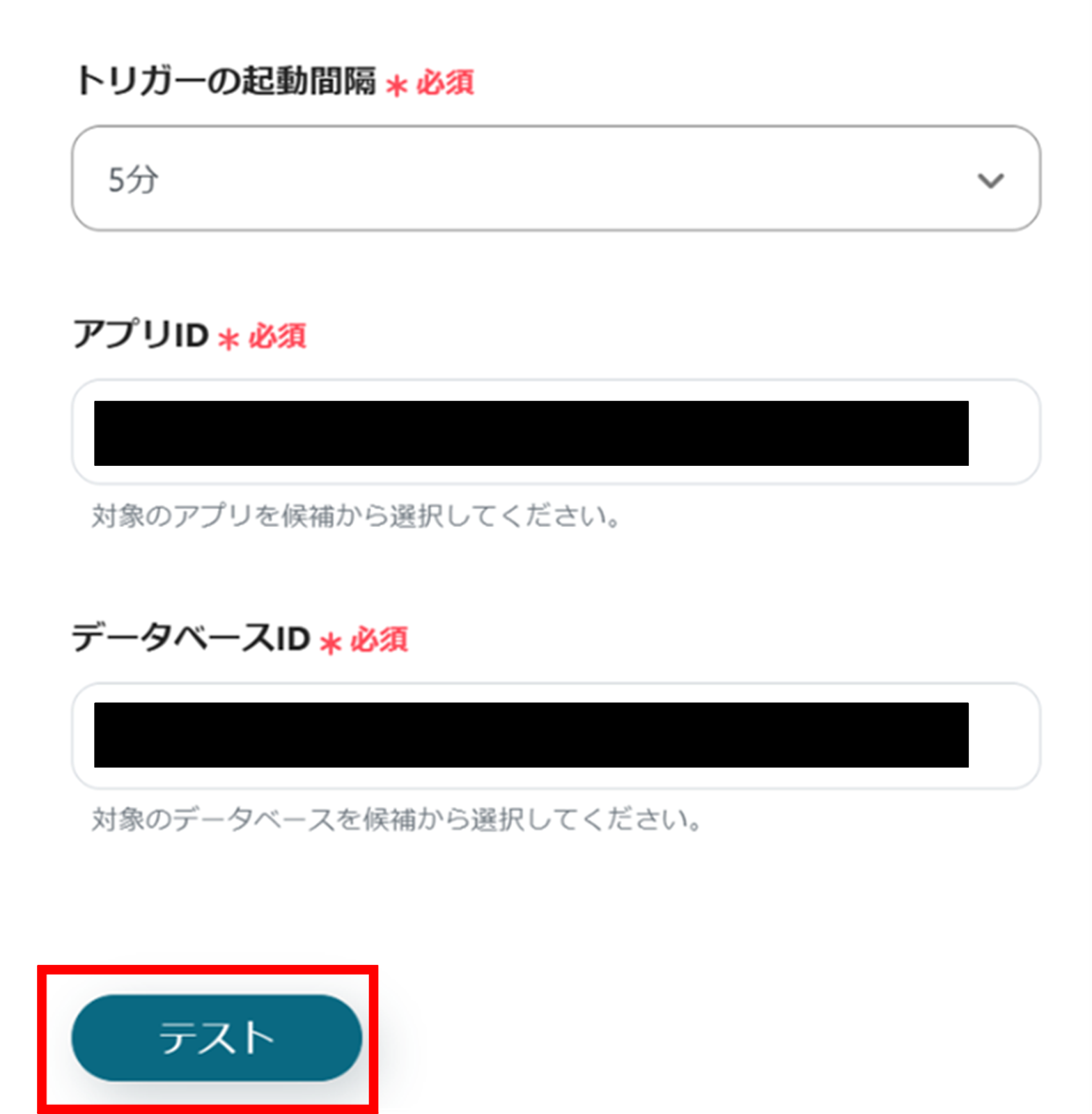 入力が完了したら、下部にある「テスト」をクリックし、エラーが発生しなければ、「保存する」をクリックします。