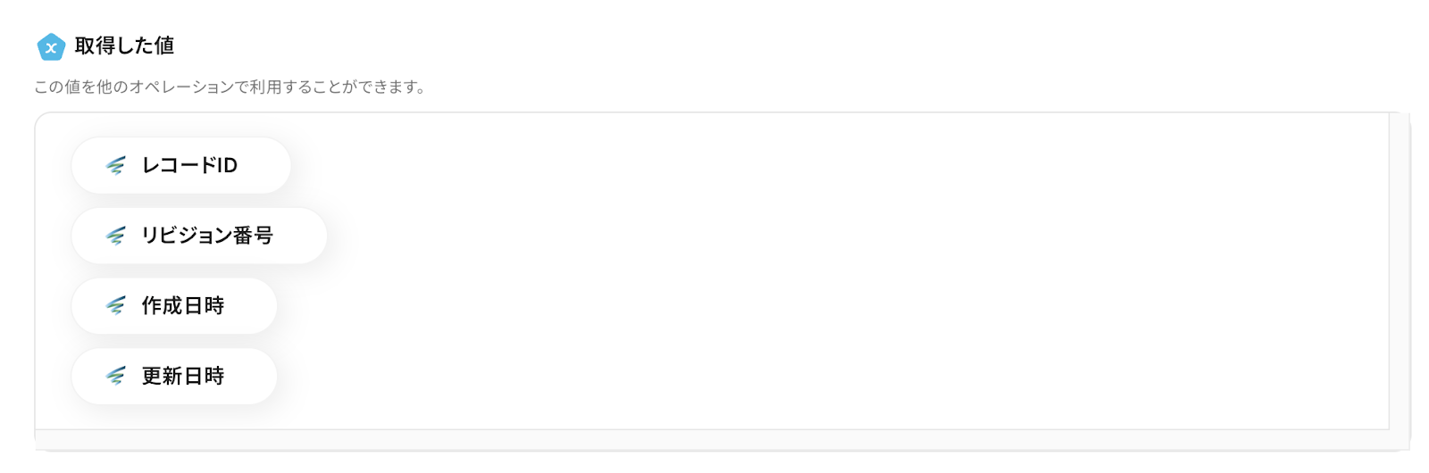 テストに成功すると「取得した値」としてSPIRALのレコード情報が反映されます。