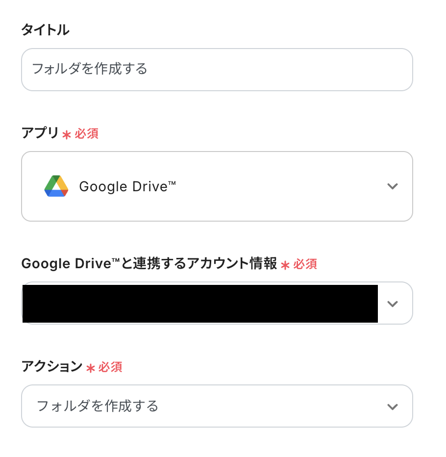 「フォルダ名」をステップ3で取得した値を活用して入力します。