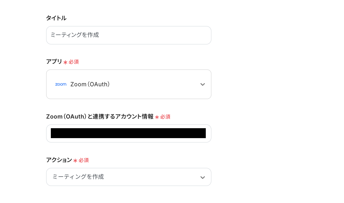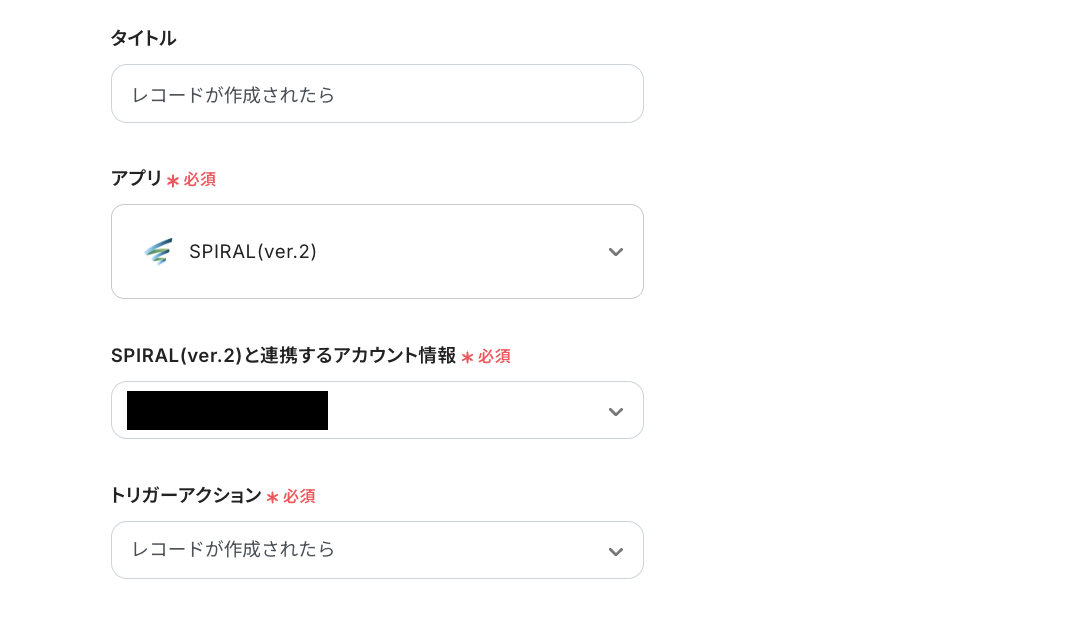 「レコードが作成されたら」をクリックして、連携するアカウント情報を入力してください。