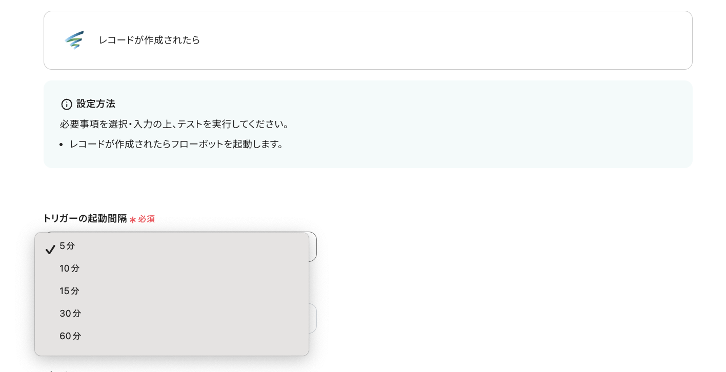 ・トリガーは5分、10分、15分、30分、60分の間隔で起動間隔を選択できます。