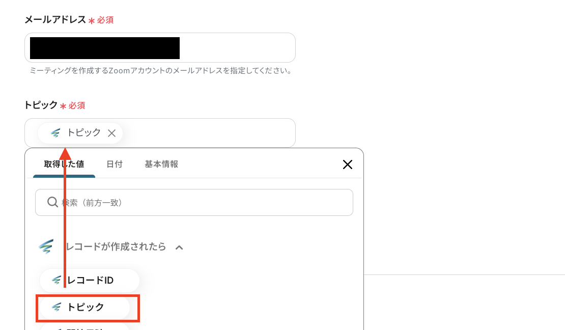次の画面で「メールアドレス」や「トピック」を始めとする項目に情報を入力しましょう。