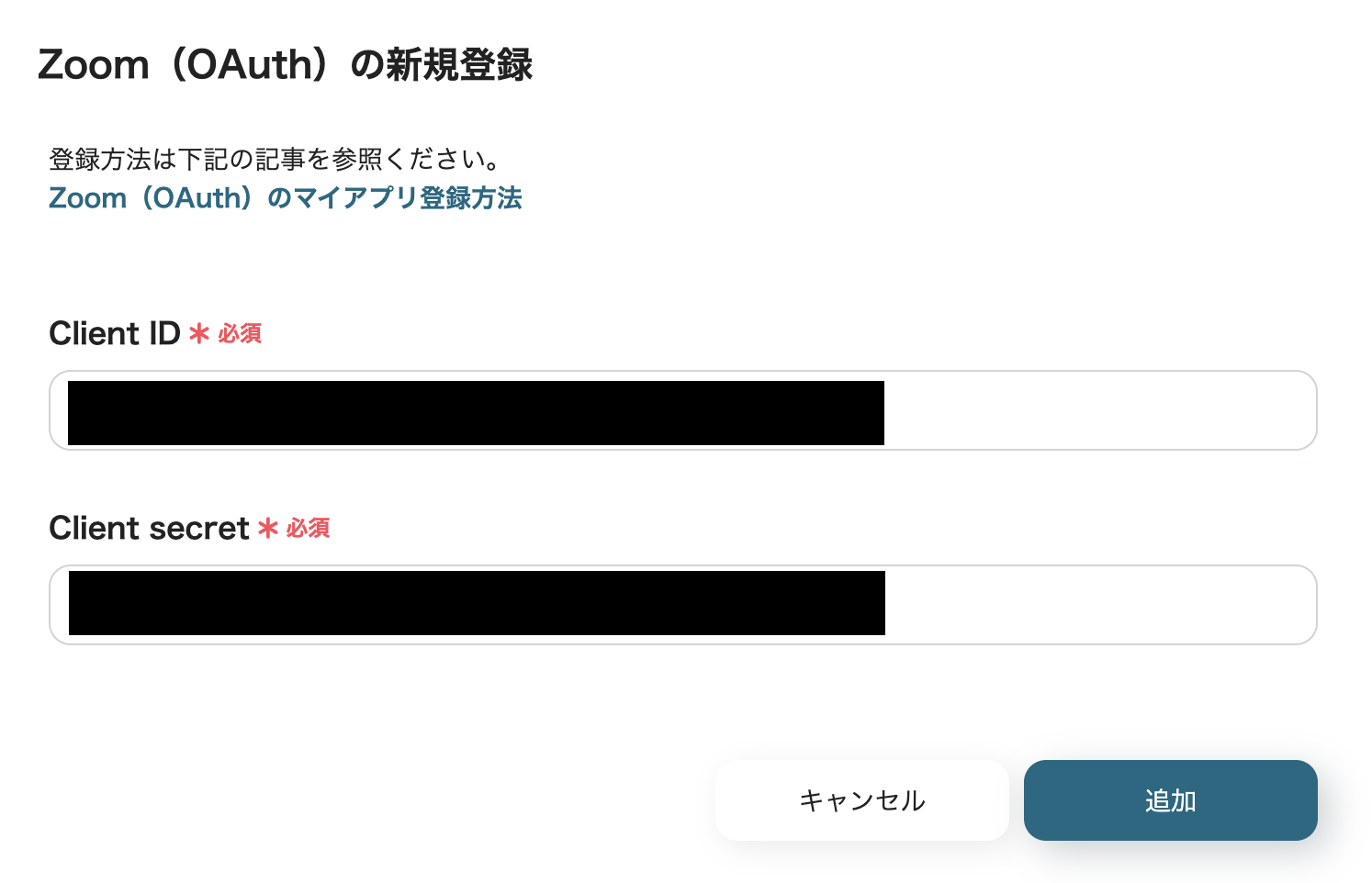 連携するZoomの「Client ID」と「Client secret」を入力します。