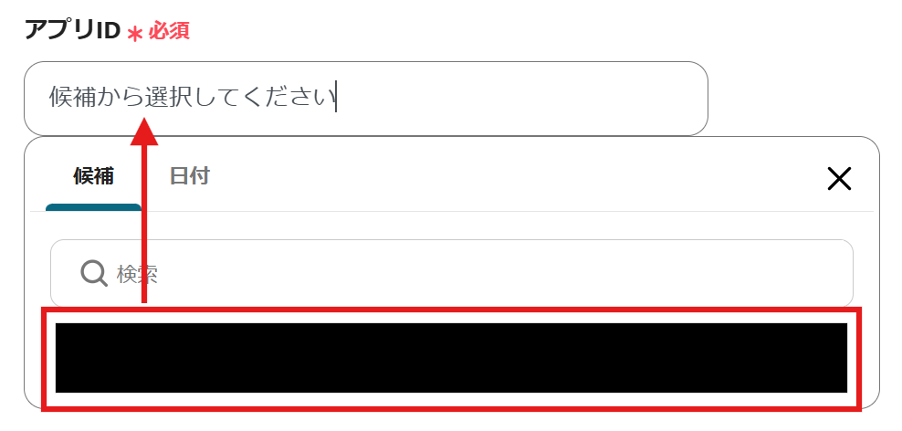 項目内をクリックすることで、候補が表示されるので該当するアプリIDを設定しましょう。