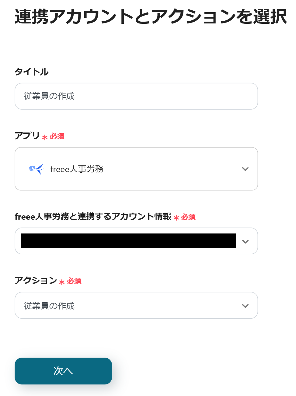 2.freee人事労務で従業員が登録されたら、Notionの従業員管理表にも自動追加するフローです。