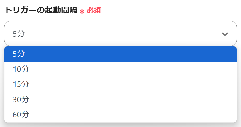 以下の画面が表示されたら、「トリガーの起動間隔」を設定しましょう。